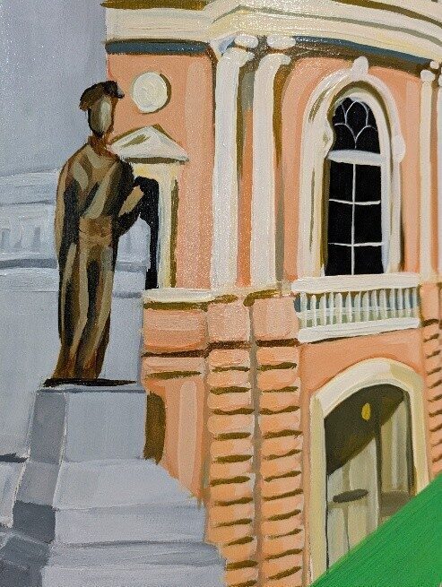The Perry County Courthouse, located in New Bloomfield, is situated in the rolling hills on the front of the bell. Both this building, and the Soldiers and Sailors Monument, to the left of the courthouse, are iconic symbols of this county. The Soldiers and Sailors Monument, also located in New Bloomfield, was erected in 1898 to commemorate those who had, as stated on its inscription, “offered their lives as a sacrifice that the nation might live.” Although this monument is tied to those who served in the Civil War, its time capsule includes a list of all Perry County veterans of any American War up until that time.