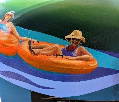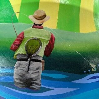 The fisherman on the back of the bell, as well as the tubers on the front of the bell, give recognition to the many ways water recreation is enjoyed in Perry County,